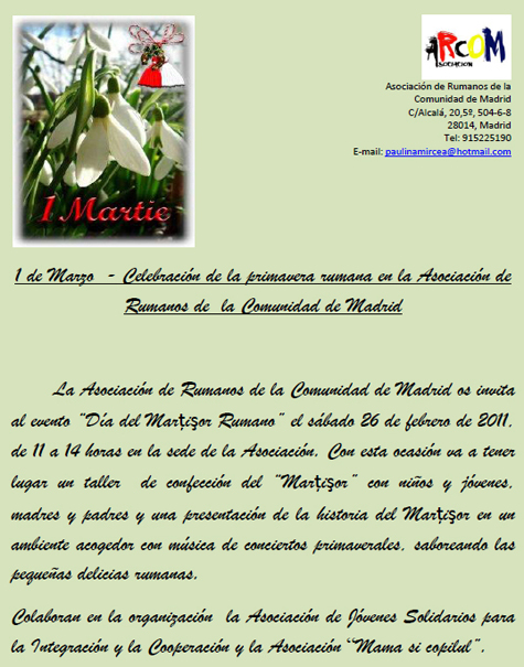 1 de Marzo – Celebración de la primavera rumana en la Asociación de Rumanos de la Comunidad de Madrid