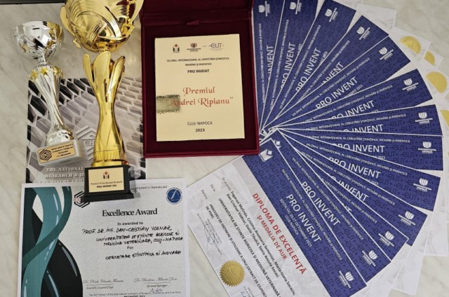 Lucrările inovative ale studenților, profesorilor și cercetătorilor de la Universitatea de Științe Agricole și Medicină Veterinară Cluj-Napoca au fost premiate în cadrul Salonului Internațional al Cercetării Științifice, Inovării şi Inventicii „Pro Invent”, găzduit de Universitatea Tehnică din Cluj-Napoca, între 25-27 octombrie 2023, cu două medalii de aur, 14 Diplome de excelență și tot atâtea medalii ProInvent.
