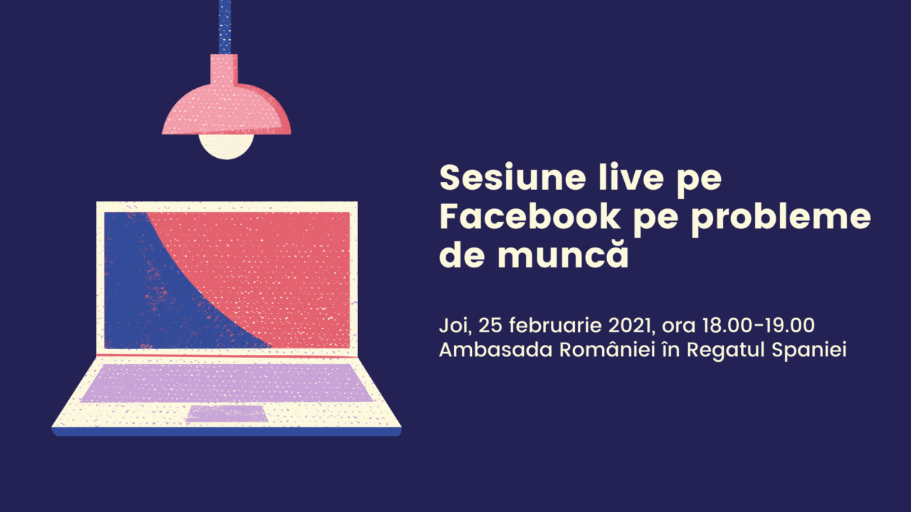 Ambasada României în Regatul Spaniei organizează o sesiune live de Întrebări & Răspunsuri cu atașatul pe probleme de muncă și sociale din cadrul ambasadei, care va fi difuzată pe pagina de Facebook a misiunii, joi, 25 februarie, de la ora 18:00 la 19:00.