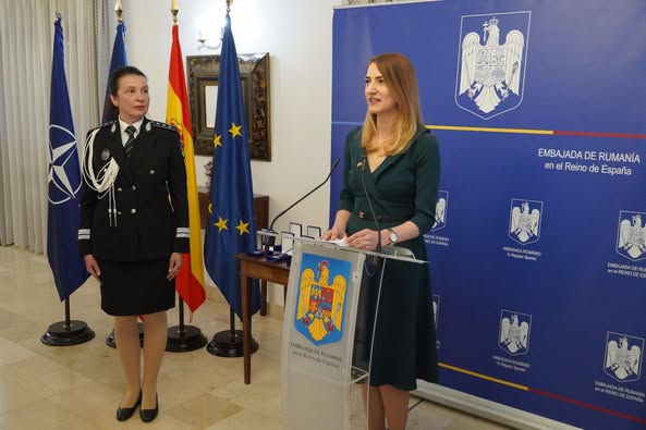 În prezența unor oficiali spanioli de rang înalt, a atașaților de interne acreditați în Regatul Spaniei, precum și a reprezentanților instituțiilor de aplicare a legii, doamna Raluca Mihăilă, însărcinat cu afaceri a.i. al Ambasadei României, a decernat “Emblema de Onoare” unor ofițeri din cadrul Poliției Naționale Spaniole și al Gărzii Civile.