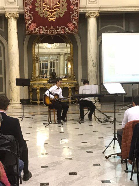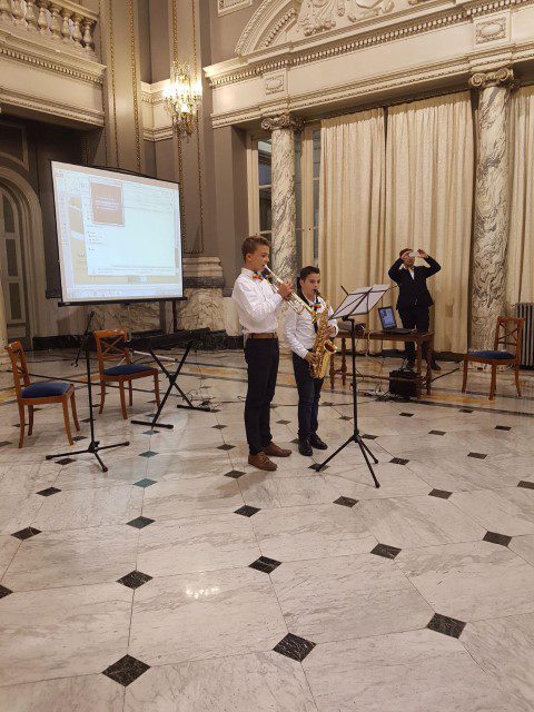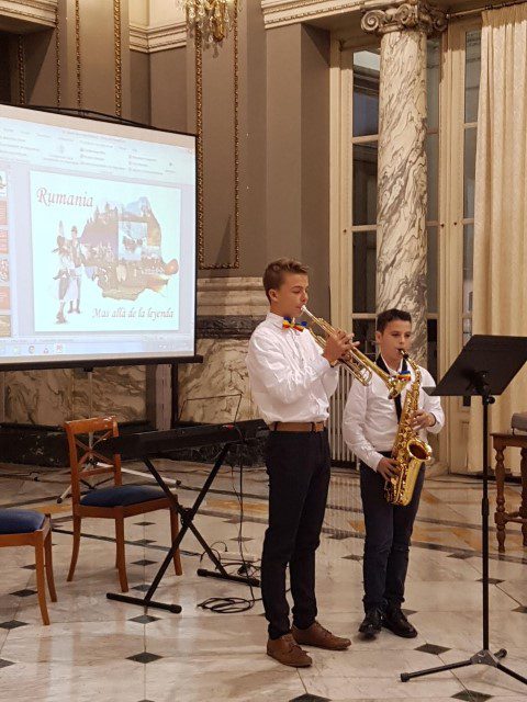 Publicul prezent la eveniment a fost apoi încântat cu interpretările copiilor: Vlad Oriel Andronicescu (trompetă), Vlad Răzvan Pecheanu (tubă), Patricia Sara Ghiurcă (poezie), Maria Crina (voce), Narcis Pavăl (saxofon), Efraim Floruţă (trompetă), David Gabriel Meianu (poezie), Alex Fabian Ifrim (pian), Fernando Damian (chitară), Rebeca Ioana Albina (poezie), Sabina Marţincu (vioară) și Robert Simion (vioară). Programul a fost completat de către superba voce a Adelinei Manea, profesor de muzică și de două proiecții pe tema: „România, dincolo de legendă” şi „Mari personalități românești”, program finalizat cu Imnul Național al României, interpretat de către Narcis Pavăl (saxofon), Efraim Floruţă (trompetă) şi Adelina Manea (voce).