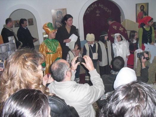 Copiii s-au adunat cu mic cu mare și au așteaptat cu emoție venirea lui Moș Crăciun. În așteptarea lui, au cântat, au spus poezii și au încercat să fie cât mai cuminți știind că doar așa vor primi daruri multe și frumoase. Moș Crăciun și-a făcut apariția ducând în spate un sac imens. Era obosit dar chipul i s-a înseninat și i s-a luminat la auzul glasurilor cristaline. O fetiță s-a apropiat cu pași șovăielnici de el și, supărată l-a întrebat de ce în loc de jucării și ciocolată a primit în dar doar o biată iconiță pe care e desenat un copil culcat într-un grajd dărăpănat. Moșul a ridicat fetița pe genunchii săi și i-a spus povestea nașterii lui Isus pentru ca micuța să înțeleagă faptul că, darul ei este cel mai de preț. Aceasta este sceneta pe care copiii din Aranjuez au interpretat-o în ziua de Crăciun. Un mic spectacol pregătit de Asociația Hispano-Română din Aranjuez, pentru cei aproape două sute de români care s-au adunat în această zi de sărbătoare în Biserica Ortodoxă Română din localitate. Interpretarea copiilor, colindele cântate de toți cei prezenți și mirosul bradului adus din țară, i-au făcut să uite pentru o vreme că sunt atât de departe de casă, departe de cei dragi. Dintre cei care au participat la acest eveniment au dat și o mână de ajutor organizatorilor. Unii au adus bradul și l-au împodobit, alții au cumpărat cadouri, cu toți dornici de aduceri aminte și de Crăciunul sărbătorit acasă.