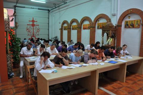 Apropiindu-ne de încheierea primului an de „cercetare”, astăzi, în Duminica Samarinencei, a avut loc susţinerea, de către cei 50 de cursanţi, a primei din cele două evaluări finale, care au ca scop verificarea cunoştinţelor asimilate. Rezultatele acestor evaluări sunt cu atât mai importante cu cât cursantul cu cele mai bune rezultate va beneficia anul acesta de un pelerinaj gratuit în Ţara Sfântă. Temele propuse pentru examinare au fost: Sfintele Taine şi ierurgiile, Laudele Bisericii, Rugăciunile esenţiale ale vieţii de zi cu zi a creştinului (la intrarea în biserică, la icoanele din biserică, înainte de împărtăşire, înainte de masă, după masă etc), persoane venerate de Biserică şi obiecte de cult (Maica Domnului, îngerii, sfinţii, sfintele moaşte, crucea, icoanele).