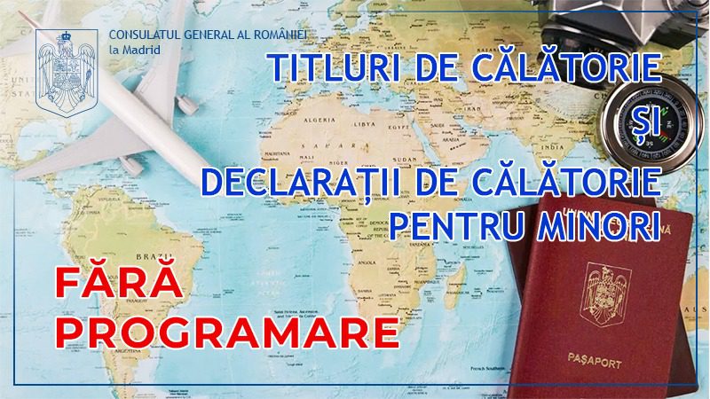 În perioada 27-31 martie 2023, CG al României la Madrid va prelua fără programare cererile de titluri de călătorie și declarații de trecere a frontierei (pentru minori)