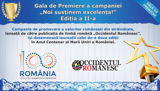 Gala de premiere organizată de către redacția Occidentul Românesc va marca încheierea celei de-a doua etape a campaniei, care, iată, coincide cu un an de mare sărbătoare pentru toți românii, indiferent unde se află. La aniversarea României Mari, celebrăm, în acest fel, valoarea românească. La Mulți Ani, România și români de pretutindeni!