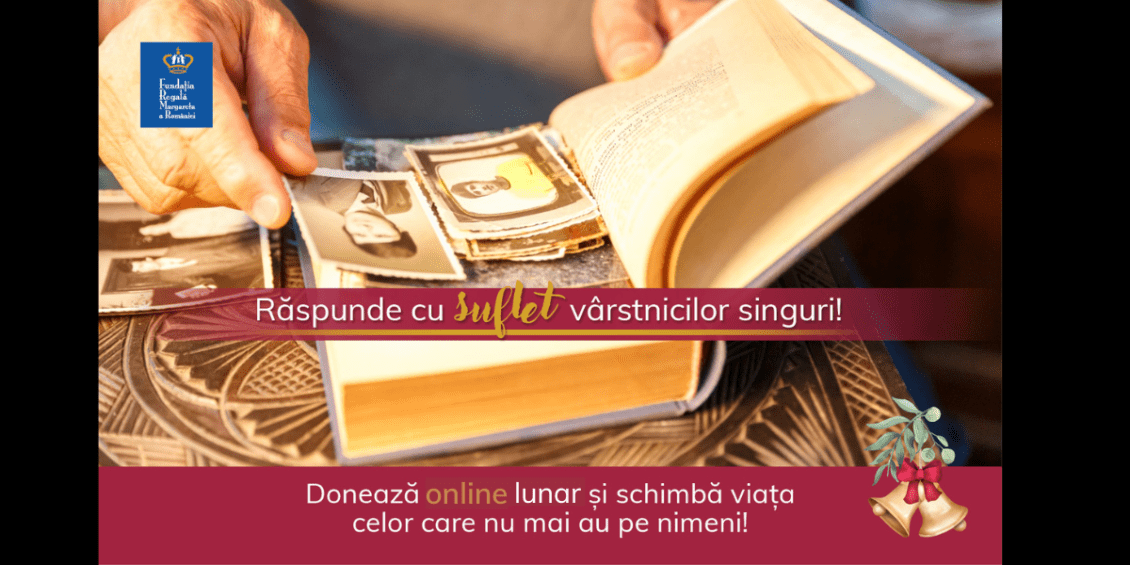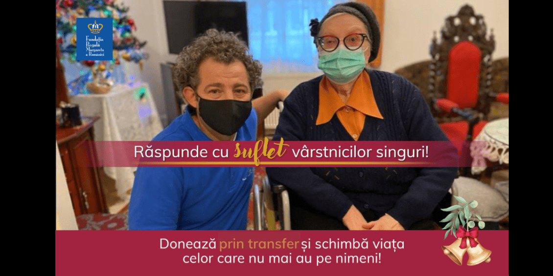 Fundația Regală Margareta a României lansează Campania de ajutor pentru vârstnicii României, pentru a sprijini de Sărbători și pe parcursul anului ce urmează seniori din România aflați în situații dificile de viață. Până la 5000 de persoane în vârstă vor beneficia de ajutor material, de sprijin practic și susținere emoțională prin programul Fondul Special pentru Vârstnici, finanțat din donații. Sub îndemnul ”Răspunde cu suflet vârstnicilor singuri!”, oamenii de bine sunt invitați să se alăture eforturilor de a susține nevoile urgente ale vârstnicilor, direcționând către Fundație, pentru acest program, o donație pe www.frmr.ro/donationline/ sau prin transfer bancar.