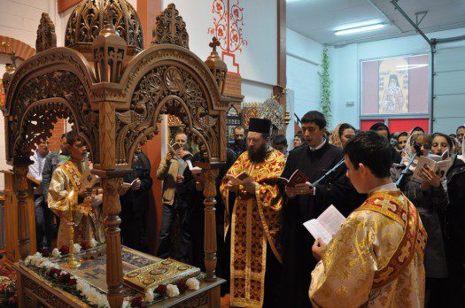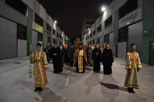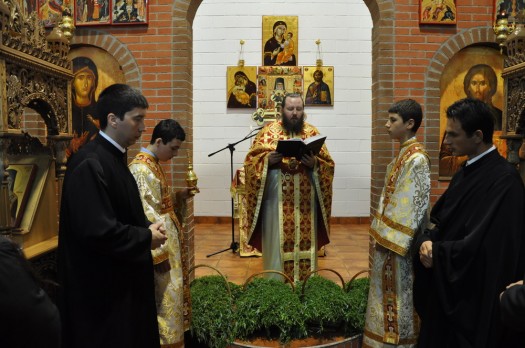 Apoi, am fost la vecernia din Sâmbăta cea plină de tăcere, de durere şi de aşteptare. Am pomenit, cu darul lui Dumnezeu, în Sâmbăta cea Mare, înmormântarea Domnului Hristos, petrecerea în mormânt a Mântuitorului nostru. Am retrăit cele ce s-au petrecut pentru noi şi pentru a noastră mântuire în această zi. Hristos este în mormânt cu trupul, în iad cu sufletul şi în Rai, ca un Dumnezeu, cu tâlharul. Prohodul Domnului de vineri seara a fost ultima etapă a tânguirii lui Hristos, Care se află acum în mormânt. Adunaţi în jurul epitafului, credincioşii comunităţii L-au prohodit pe Domnul, după care, la sfârşitul slujbei, au înconjurat, în procesiune, biserica, cu Sfântul Aer, pe sub care au trecut cu toţii.