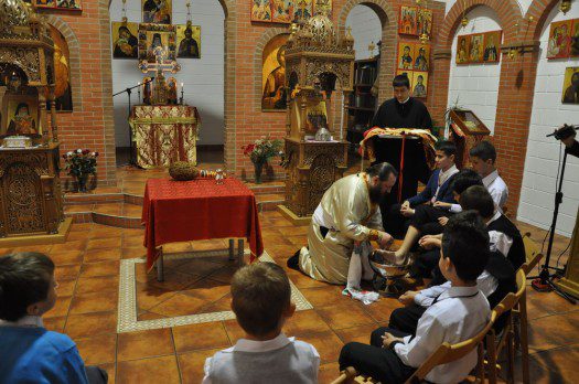 Ca în fiecare an, şi anul acesta, în biserica parohială, după Sfânta Liturghie, s-a săvârşit ritualul spălării picioarelor, la care au participat copii din cadrul Şcolii parohiale “Sfinţii Martiri Brâncoveni”. A fost un moment încărcat de emoţie, vibrant, care a adus ceva din atmosfera ultimelor ceasuri petrecute de Mântuitorul înainte de Cinstitele Sale Patimi.