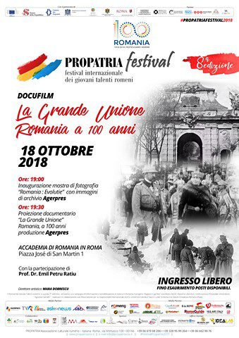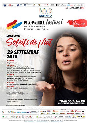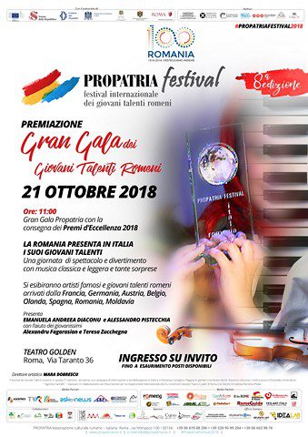 Ajuns la a opta ediție, Festivalul Internațional PROPATRIA – Tinere Talente Românești revine în 2018 cu un bogat program de evenimente care se va desfășura în locații de prestigiu din Roma, Italia.