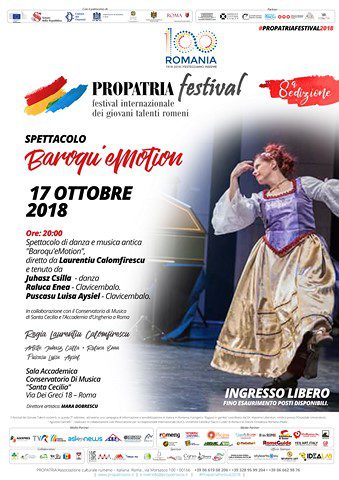 Data de 17 octombrie a.c. va fi dedicată muzicii vechi. Realizat în colaborare cu Accademia d’Ungheria in Roma și Conservatorul de Muzică Santa Cecilia din Roma, spectacolul „Baroqu’eMotion” în regia lui Laurențiu Calomfirescu, susţinut de Juhasz Csilla (dans), Pușcașu Luiza –Aysel și Raluca Enea (clavecin), oferă o imagine muzicală diferită a clavecinului și a posibilităților sale. Conceptul artistic al evenimentului și secvența pieselor selectate ilustrează modul în care acest instrument a evoluat în timp. Călătoria muzicală va fi colorată prin momente de dans cu scenografii specifice.