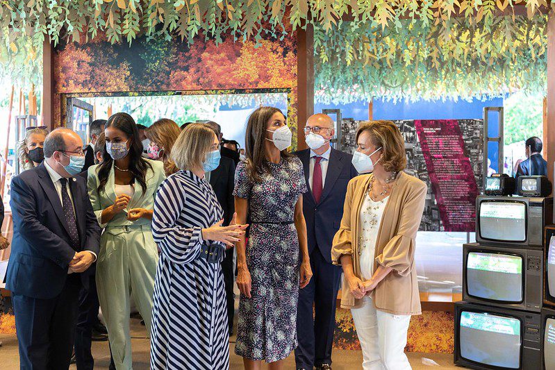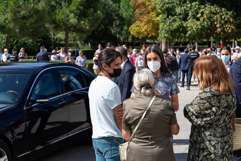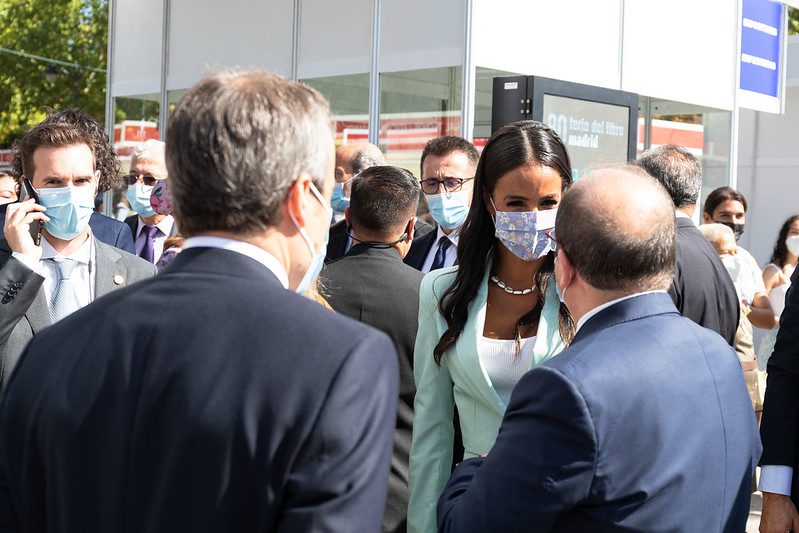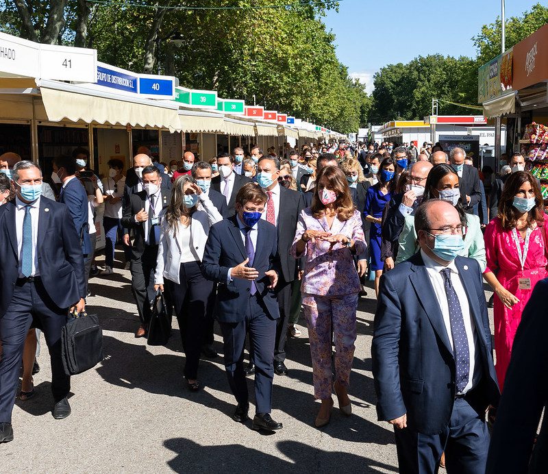 Madrid, 10 de septiembre de 2021.- Su Majestad la Reina, en representación de la Casa Real, comenzó su visita a la Feria del Libro de Madrid puntual a las 11:00 h, acompañada por una significativa representación de personalidades, entre ellas, de Colombia, país invitado. A su llegada al Parque de El Retiro, fue recibida por la vicepresidenta del Gobierno de Colombia, Marta Lucía Ramírez; el embajador de Colombia, Luis Guillermo Plata; el ministro de Cultura, Miquel Iceta Llorens; el alcalde de Madrid, José Luis Martínez-Almeida Navasqüés; la vicealcaldesa, Begoña Villacís Sánchez; el presidente de la Feria del Libro, Enrique Pascual; y el director de la Feria del libro, Manuel Gil Espín. También por el ministro consejero de Italia, Roberto Frangione; el embajador de España en Colombia, Marcos Gómez Martínez; la directora general del Libro y Fomento de la Lectura, Mª José Gálvez Salvador; la consejera de Cultura, Turismo y Deporte Comunidad Madrid, Marta Rivera de la Cruz; el concejal Presidente de la Junta Municipal de Retiro, Santiago Saura Martínez de Toda y la directora General de Patrimonio Cultural de la Comunidad de Madrid, Elena Hernando Gonzalo; la directora General Industrias Culturales y del Libro, Adriana Moscoso; el presidente de RTVE, Jose Manuel Pérez Tornero; el director Territorial Madrid Metropolitana de CaixaBank, Rafael Herrador; y el director general de Bibliotecas, Archivos y Museos del Ayuntamiento de Madrid, Emilio del Río. Durante una hora, doña Letizia y su comitiva pasearon entre las casetas ubicadas en el Paseo de Coches del Parque de El Retiro.